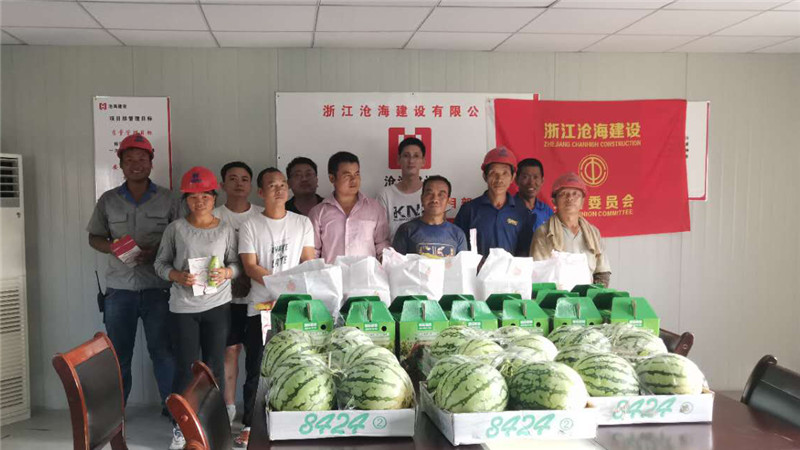 7月份以來,炎炎夏日,驕陽似火,滄海各施工項目部、監(jiān)理及參建單位廣大干部員工不畏酷暑,依舊堅守崗位,為實現(xiàn)公司年度生產(chǎn)建設(shè)目標(biāo)而奮斗拼搏。滄海建設(shè)總經(jīng)理蔣立波、工會主席徐雙以及各分管領(lǐng)導(dǎo)帶隊,分批深入各個項目部施工現(xiàn)場,看望、慰問奮戰(zhàn)在高溫一線的廣大員工。