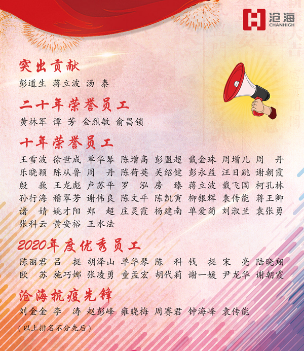 20年芳華歲月里,公司涌現(xiàn)出一大批勤奮、務(wù)實(shí)、奉獻(xiàn)、擔(dān)當(dāng)?shù)母刹繂T工,是他們撐起滄海發(fā)展道路上的一片天空,他們的精神匯聚在一起必將推動滄海向更高更遠(yuǎn)的方向前行,他們的先進(jìn)事跡也必將為滄海人所銘記,感恩一路同行的滄海人!
