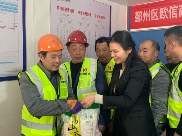 徐雙書(shū)記等領(lǐng)導(dǎo)來(lái)到項(xiàng)目施工現(xiàn)場(chǎng),為工人們送上保溫杯、保暖手套、大米、口罩、除菌洗手液等生活、防疫物資,將關(guān)懷和溫暖送進(jìn)他們的心里。她叮囑大家冬天室外作業(yè)天氣冷、施工跨度大、危險(xiǎn)源多,一定要遵守施工安全管理規(guī)范,保障人身安全和身體健康,并提前祝福大家新春快樂(lè)。她要求項(xiàng)目部在抓好安全生產(chǎn)工作、保證施工生產(chǎn)進(jìn)度的同時(shí),做好防寒保暖工作。