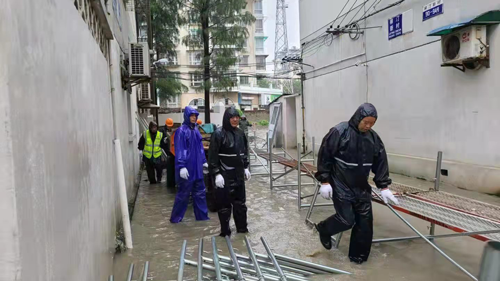 在南門街道柳汀新村,滄海項(xiàng)目部積極組織人手幫助小區(qū)抗臺(tái)防汛,并安排人員輪值在小區(qū),保障小區(qū)人員出入安全。