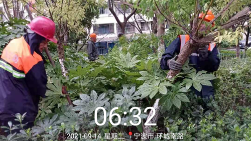 14日清晨,雨勢(shì)稍弱,園林工程部增調(diào)人手,及時(shí)搶救傾斜、倒伏的樹木綠植,協(xié)助疏通道路,進(jìn)一步加強(qiáng)加固,第一時(shí)間讓城市綠化恢復(fù)原貌。
