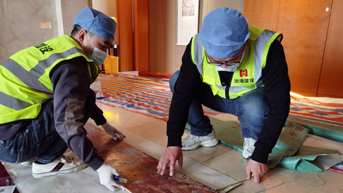 4月17日中午,滄海建設(shè)接到區(qū)建設(shè)局臨時緊急任務(wù)——對索菲特酒店進(jìn)行防疫隔離建設(shè),要對酒店的260余個客房改造以及酒店周邊安裝圍欄鋼板。任務(wù)量大,時間緊迫,滄海建設(shè)工程部副總經(jīng)理陳凱寅和殷巍第一時間對接上級主管部門和酒店負(fù)責(zé)人,及時了解情況后制定了作戰(zhàn)計劃,安排好所需的防疫建設(shè)物資。