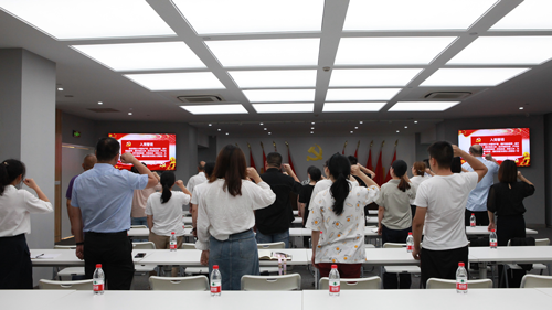 黨課開始前,黨委書記彭道生帶領(lǐng)全體黨員重溫入黨誓詞。