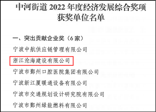 8月31日,中河街道對(duì)2022年度經(jīng)濟(jì)發(fā)展綜合獎(jiǎng)項(xiàng)獲獎(jiǎng)單位進(jìn)行了通報(bào)表彰,滄海建設(shè)獲得“突出貢獻(xiàn)企業(yè)獎(jiǎng)”。
