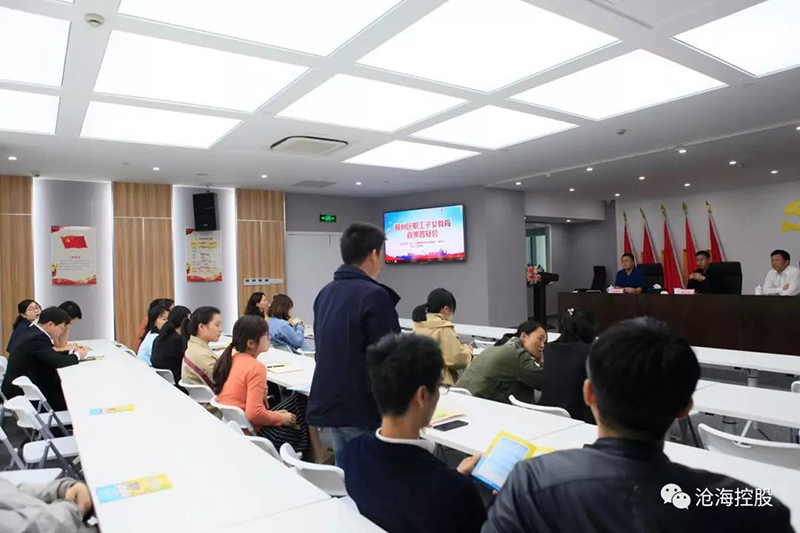 4月26日下午,鄞州區(qū)教育局黨委委員、調(diào)研員李正卡,組織科毛科達(dá)走進(jìn)滄海,與滄海員工面對面交流,為大家解讀2019年鄞州區(qū)中小學(xué)(幼兒園)招生工作政策,并就大家提出的有關(guān)學(xué)區(qū)劃分、戶口要求、新校區(qū)規(guī)劃等問題進(jìn)行了現(xiàn)場解答。